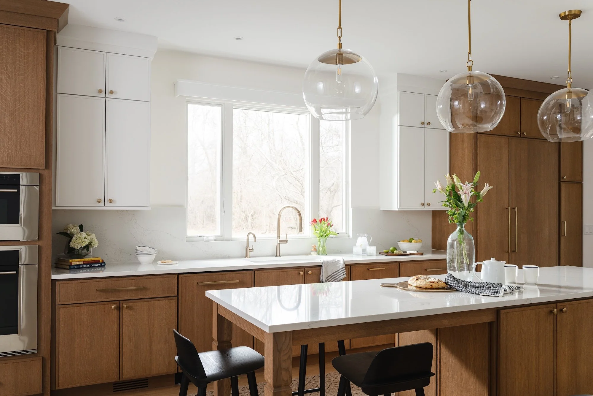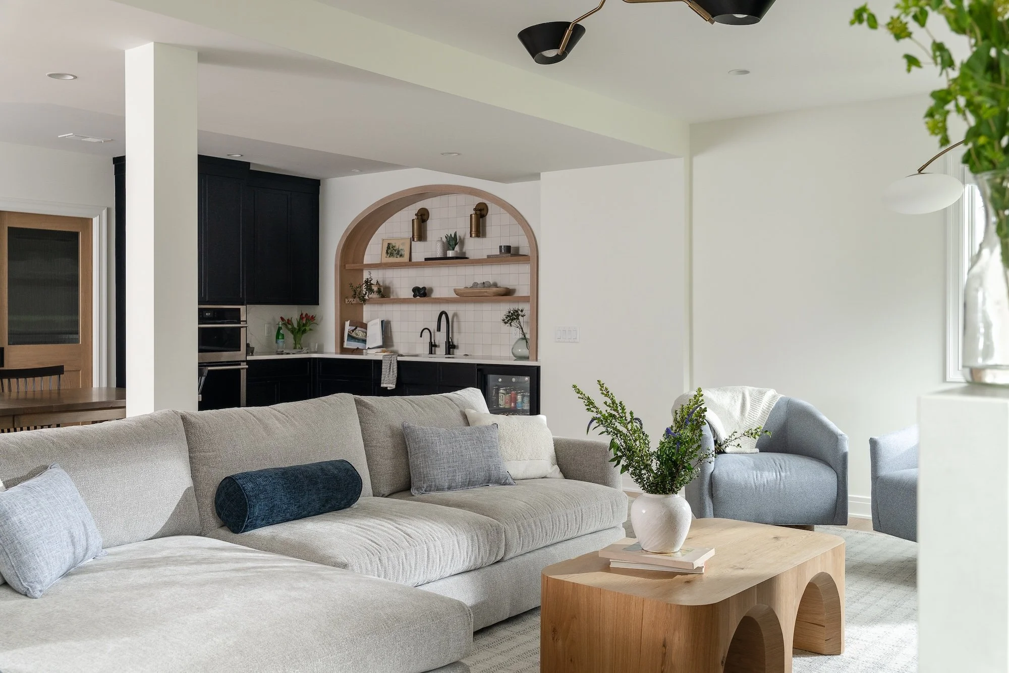 This whole-home remodel was completed in two phases for a busy family, beginning with a main floor renovation and followed by a basement remodel including a playroom, living space, and second kitchen with pantry. The design balances a modern aesthetic with family-friendly functionality, creating spaces that work for both kids and adults. The result is a cohesive, livable home that feels fresh, flexible, and designed for everyday use.