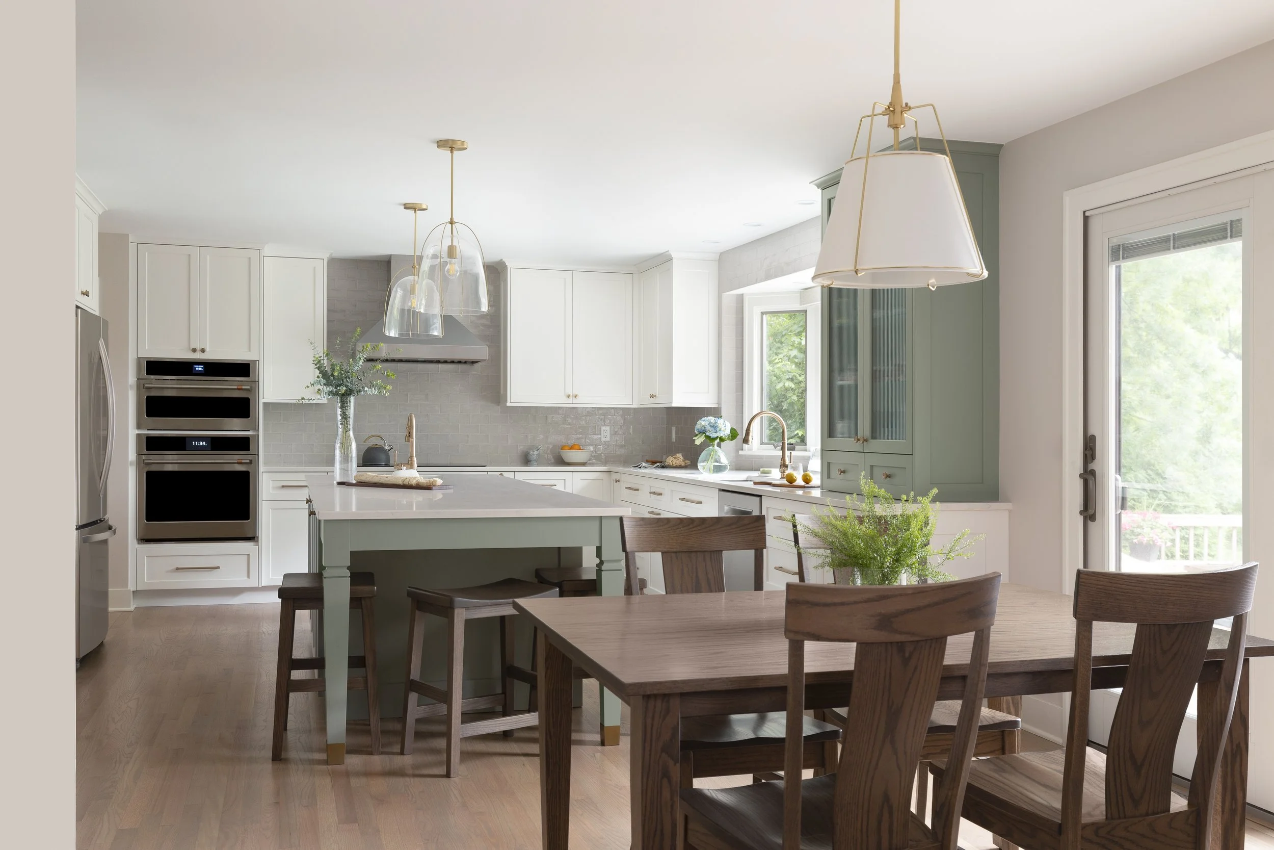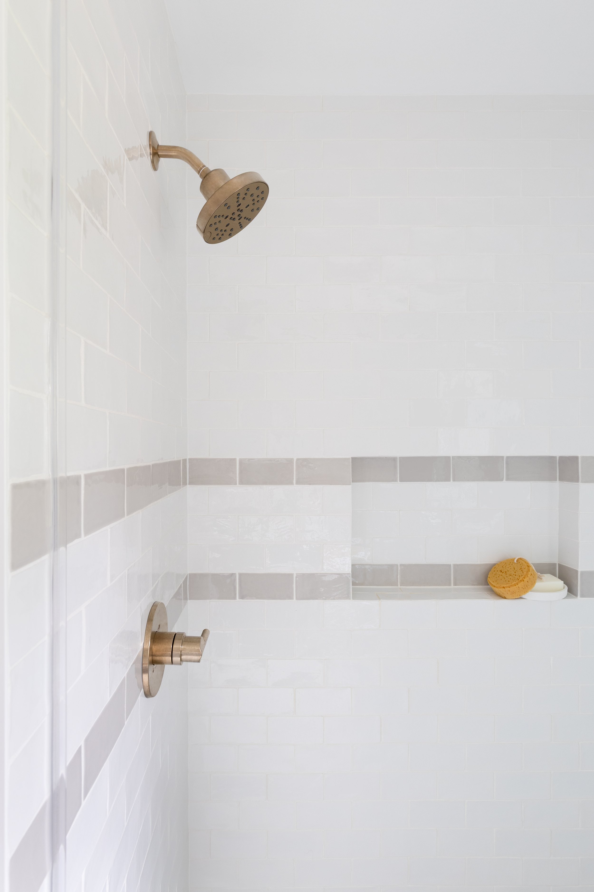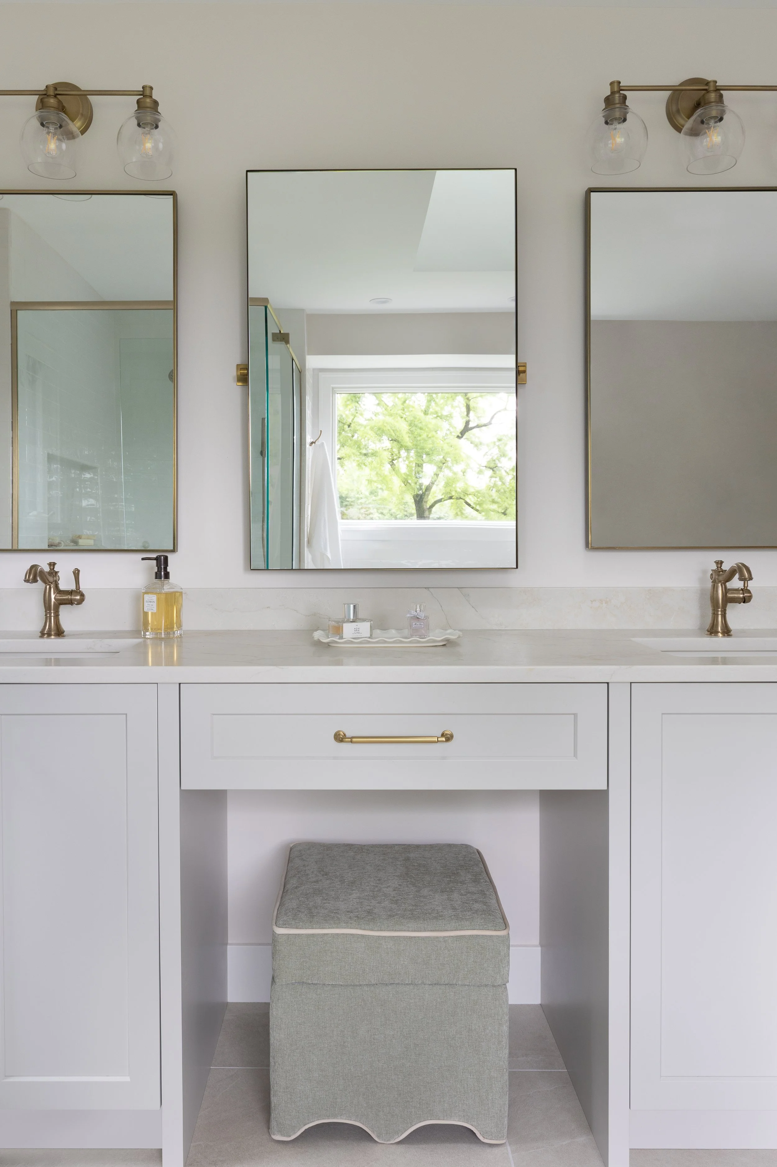 This whole-home remodel included the primary bath, guest bath, powder room, kitchen, living room, and mudroom. Our design focuses on light, bright finishes with a traditional lean—warm brass fixtures, a soft tile palette, and timeless painted cabinetry. The result is a cohesive, welcoming home that feels classic, airy, and built to last.