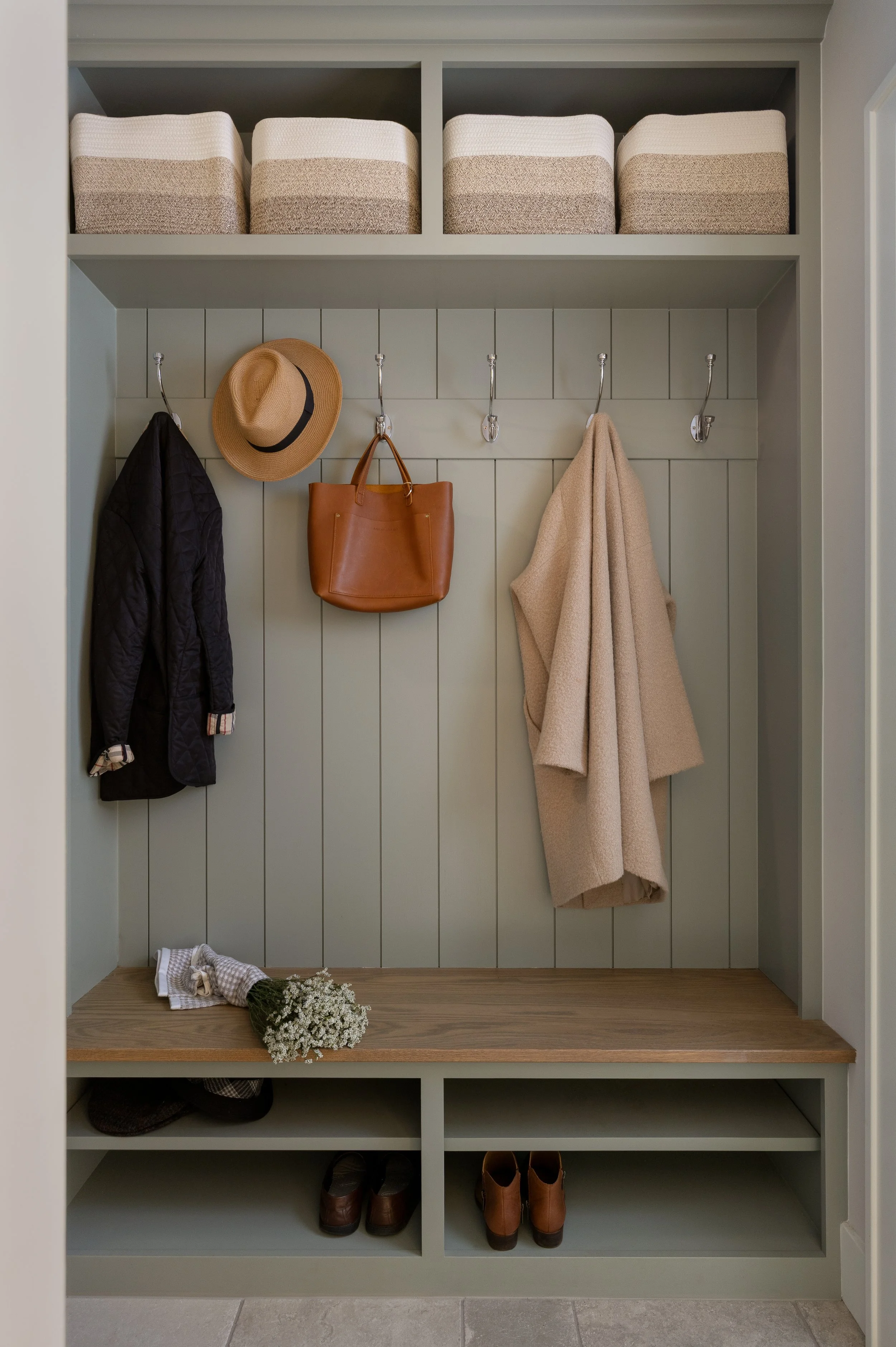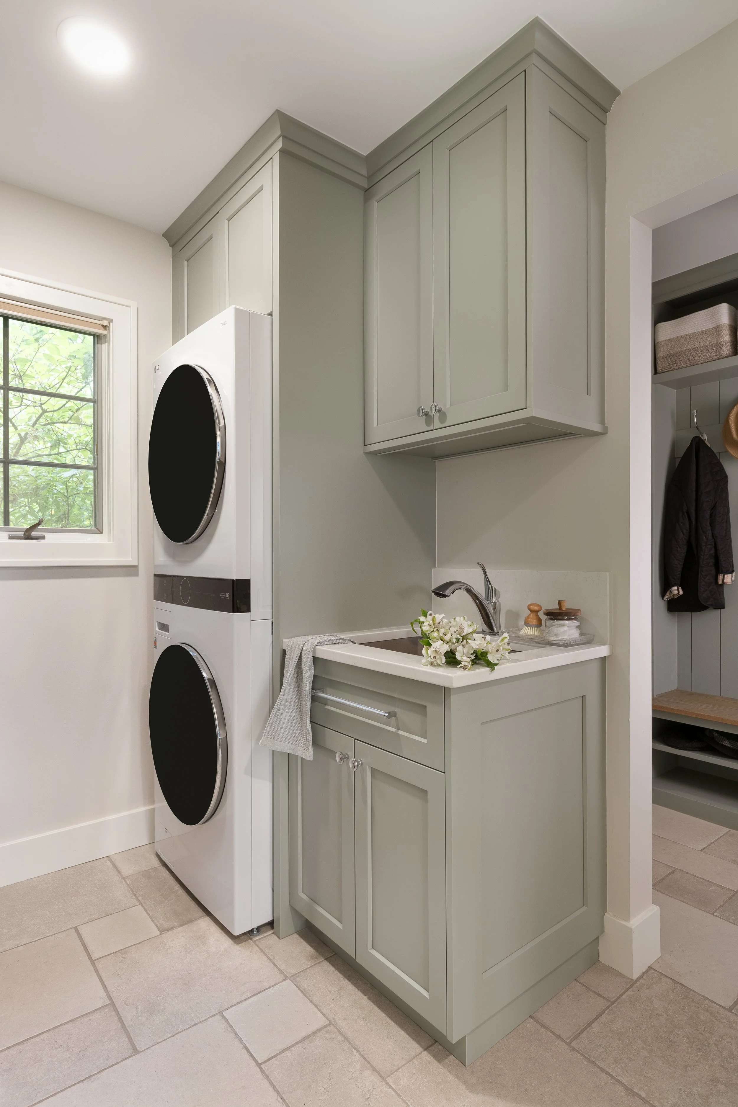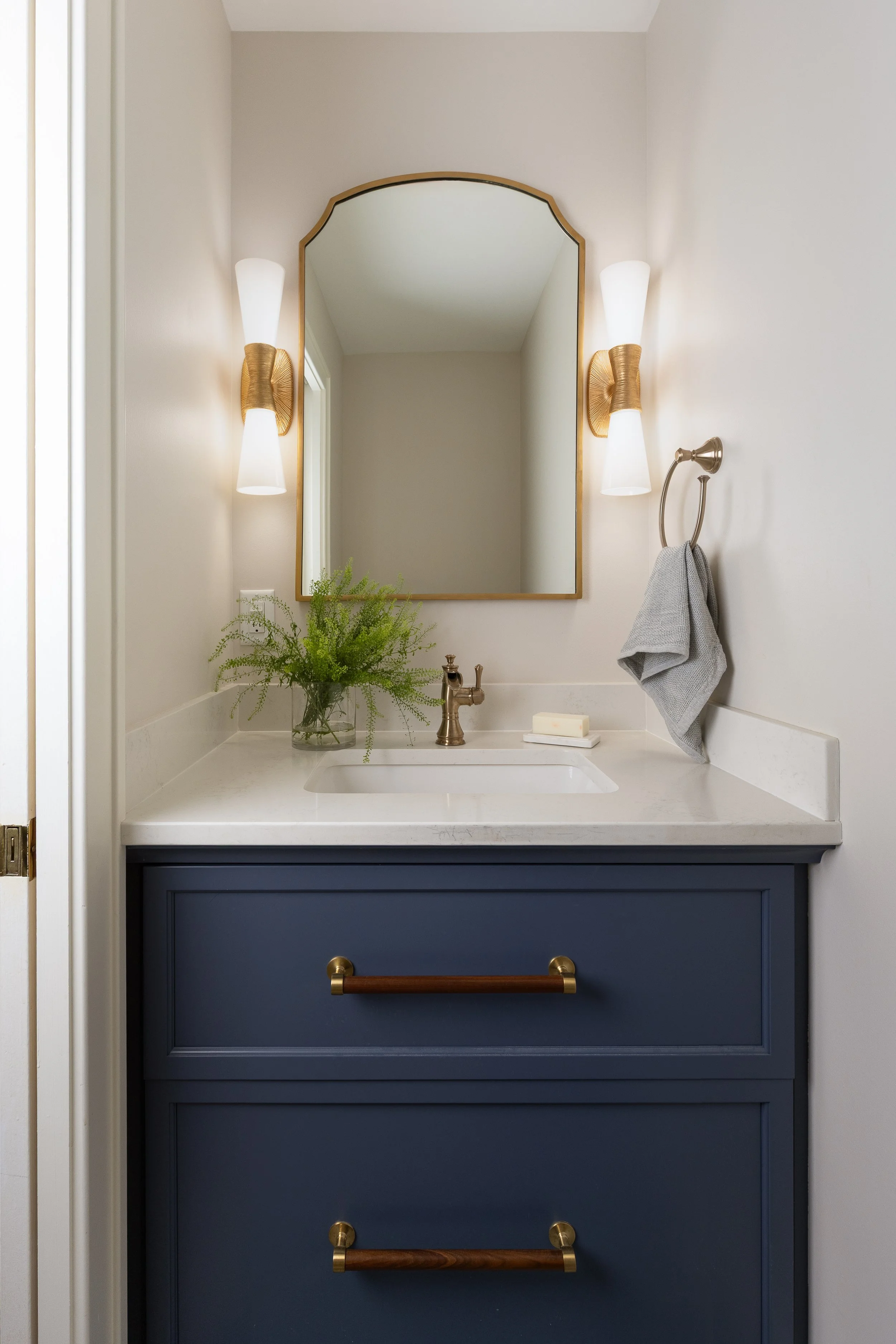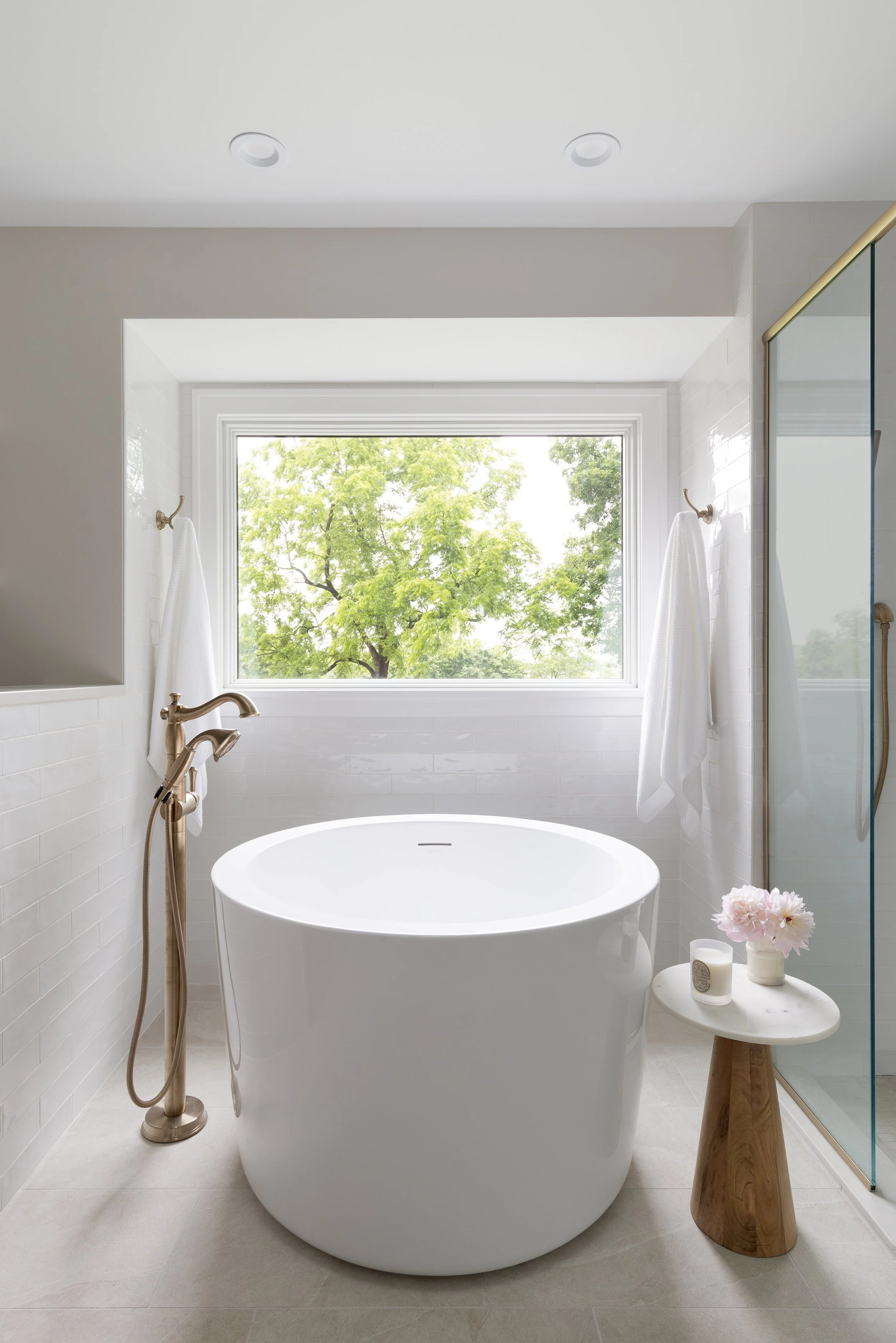 This whole-home remodel included the primary bath, guest bath, powder room, kitchen, living room, and mudroom. Our design focuses on light, bright finishes with a traditional lean—warm brass fixtures, a soft tile palette, and timeless painted cabinetry. The result is a cohesive, welcoming home that feels classic, airy, and built to last.